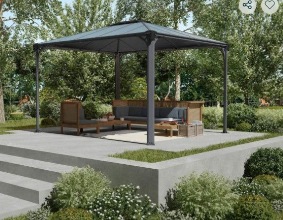 Martinique 3m x 3.6m Garden Gazebo in Grey Aluminium with Polycarbonate Roof